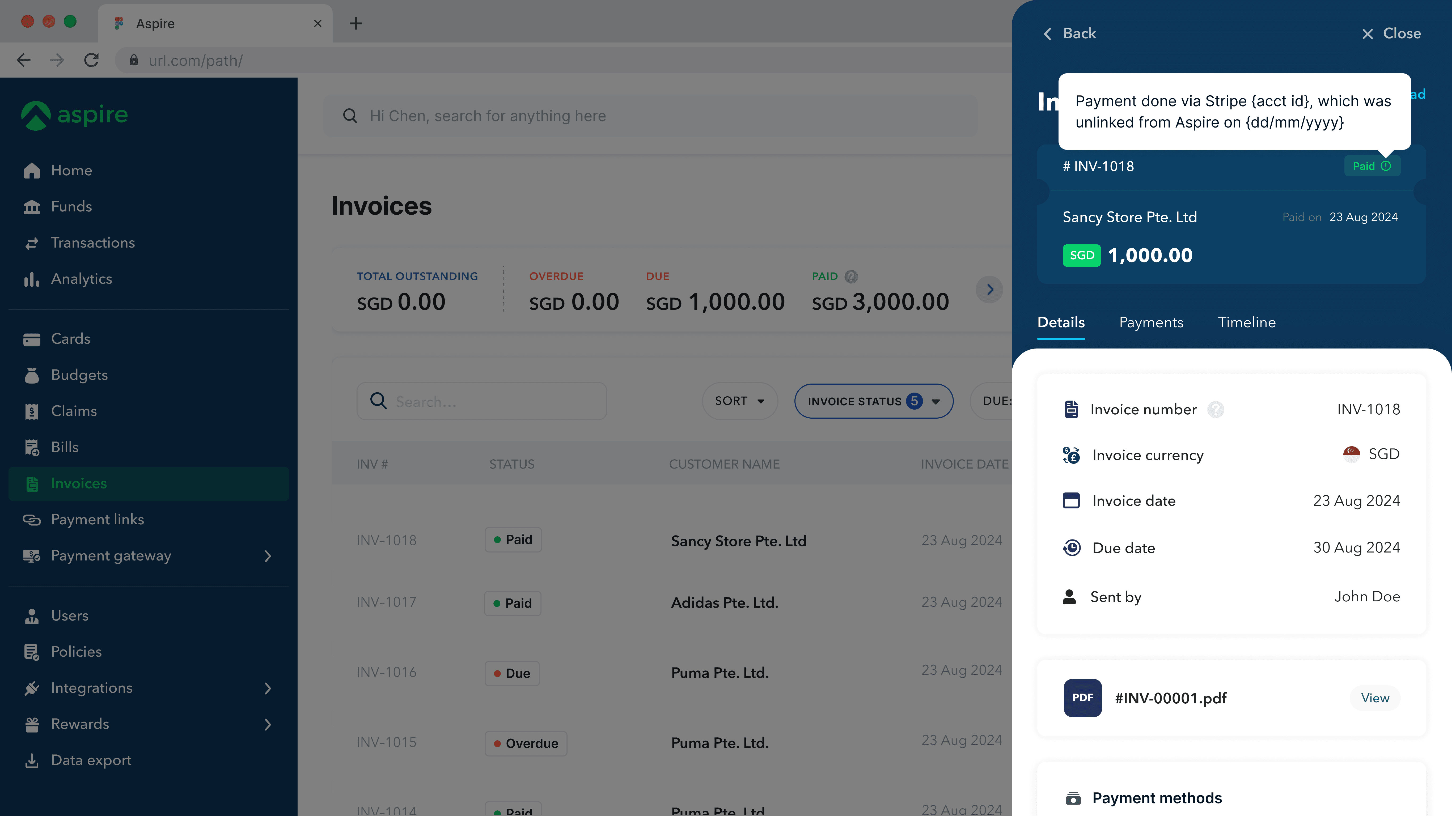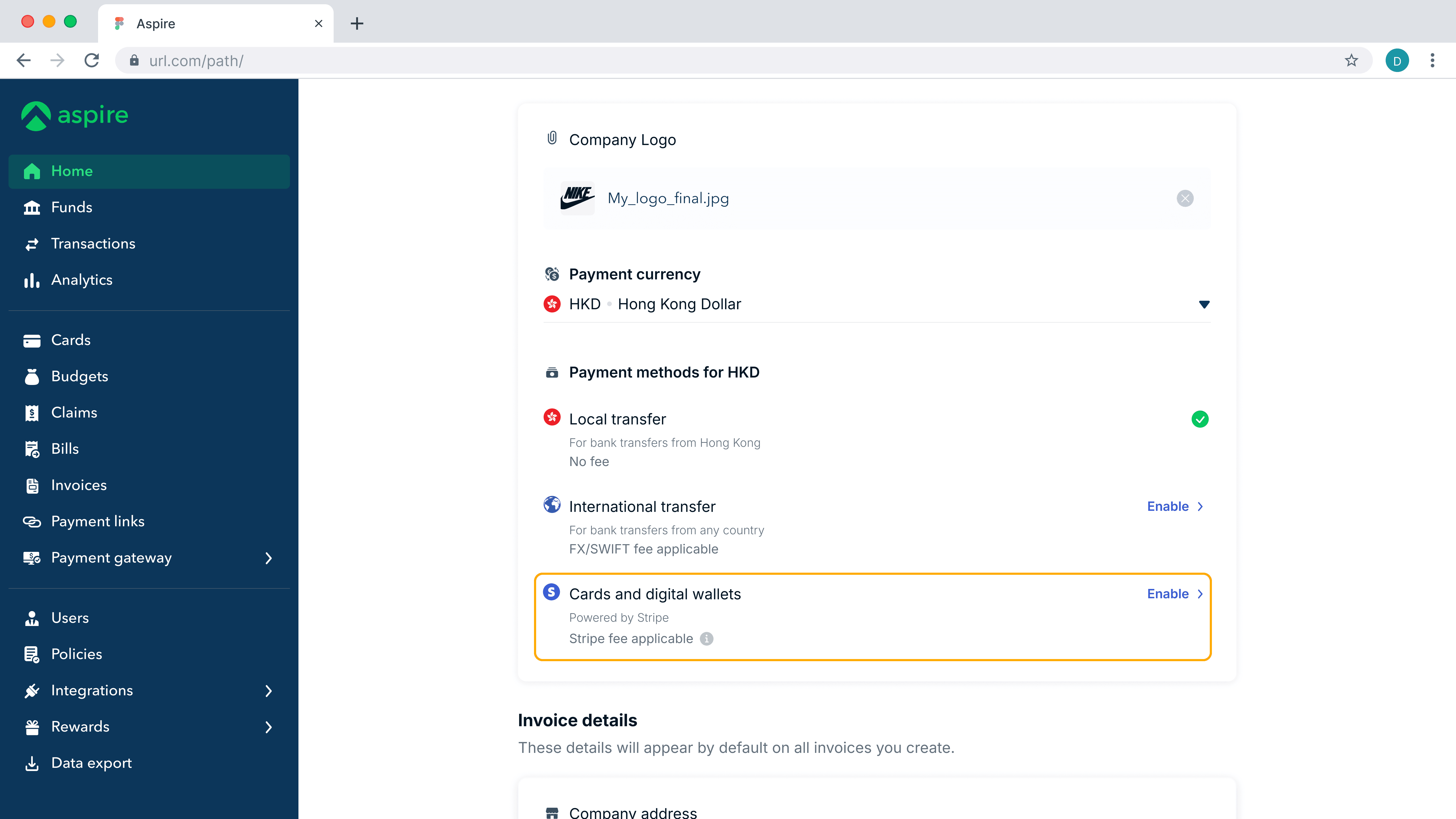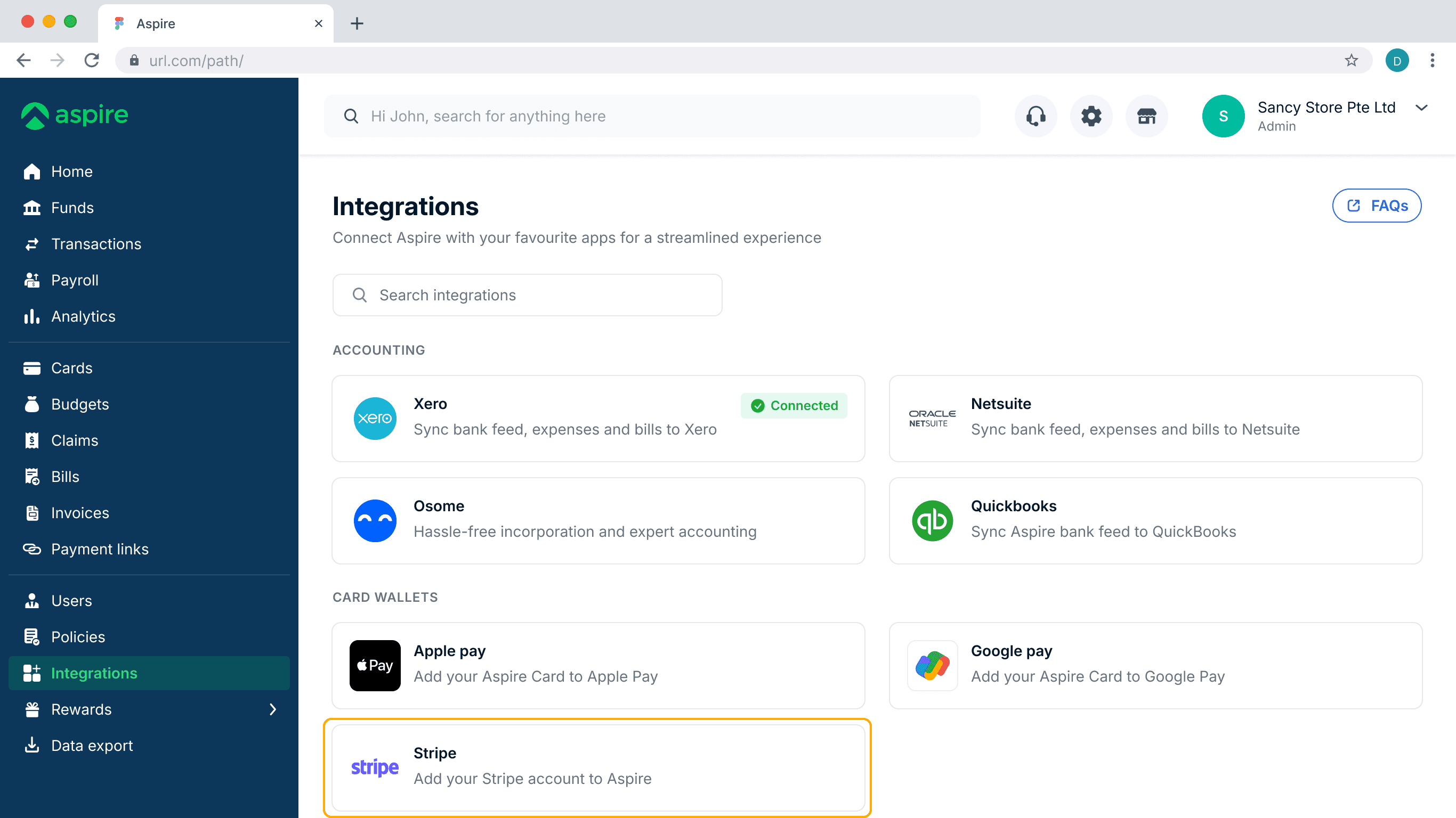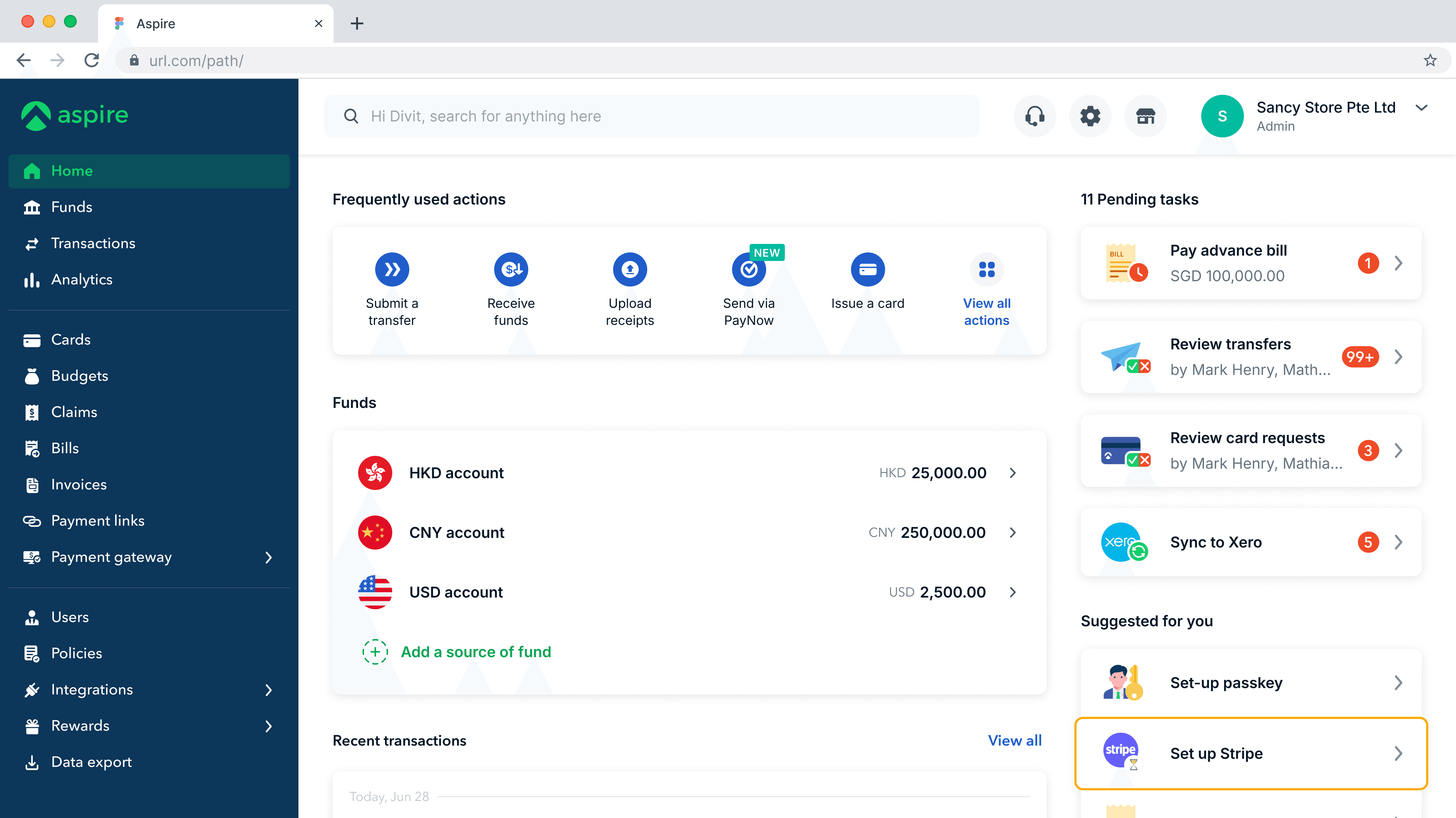 Integrated stripe as a payment method in Aspire Hong Kong and US business accounts, while improving upon the previous UX and solving pain points from the Singapore business accounts