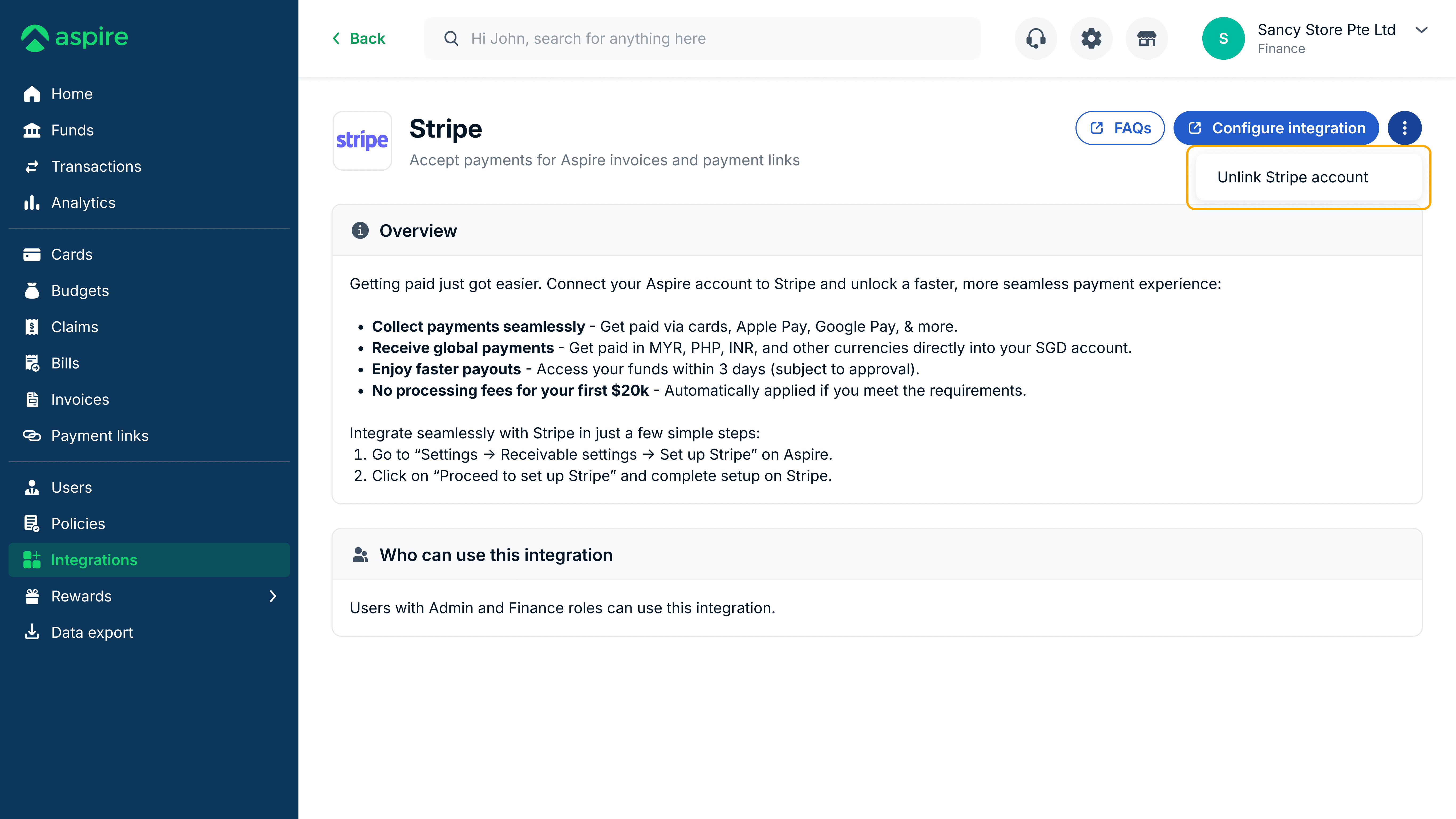 After launching our Stripe integration for Singapore businesses in Q4 2024, the natural next step was to add Stripe as an integration for Hong Kong and US accounts, our next expansions. However, many Singapore businesses were raising complaints and contacting customer support to understand how to set up Stripe or, if already connected, how to switch their accounts. So before introducing this integration to Hong Kong, the goal was to streamline Stripe setup and unlinking while reducing the customer support contact rate.