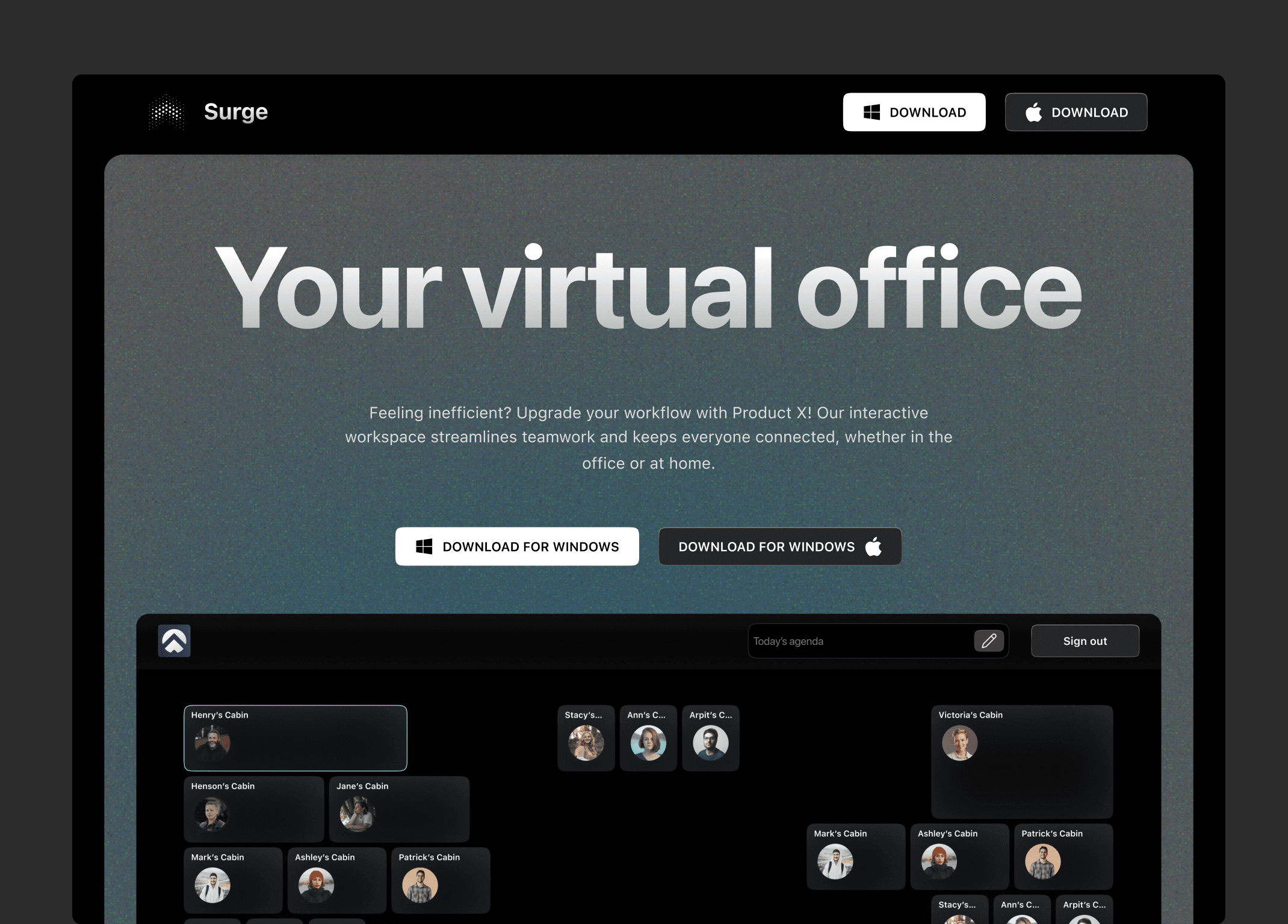 I collaborated with the founder, a UI/UX designer, and a product manager to develop Surge, a platform that enhances remote team collaboration through virtual cabins. I led the design across Desktop, Web, and Mobile and actively oversaw development while driving the innovation of new features.