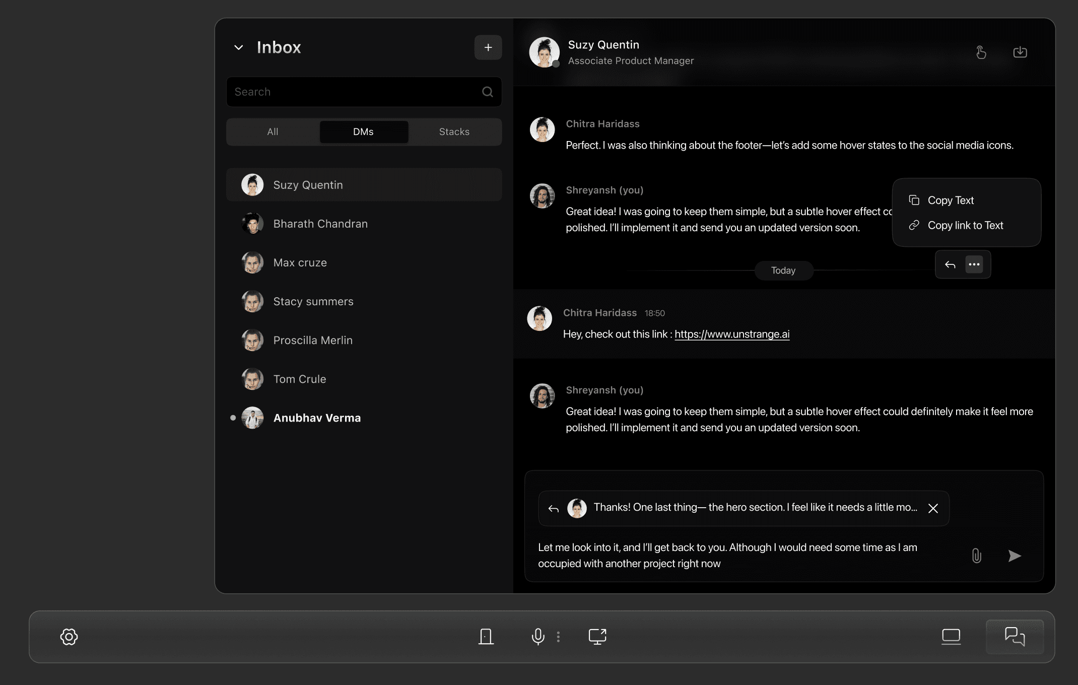 This product is built around three core modules. The Workspace enables real-time interactions, allowing users to knock on or invite others into their cabins or engage with them in a virtual meeting room. The Inbox streamlines communication through group chats and direct messaging. The Calendar keeps teams aligned by effortlessly scheduling in-platform meetings.